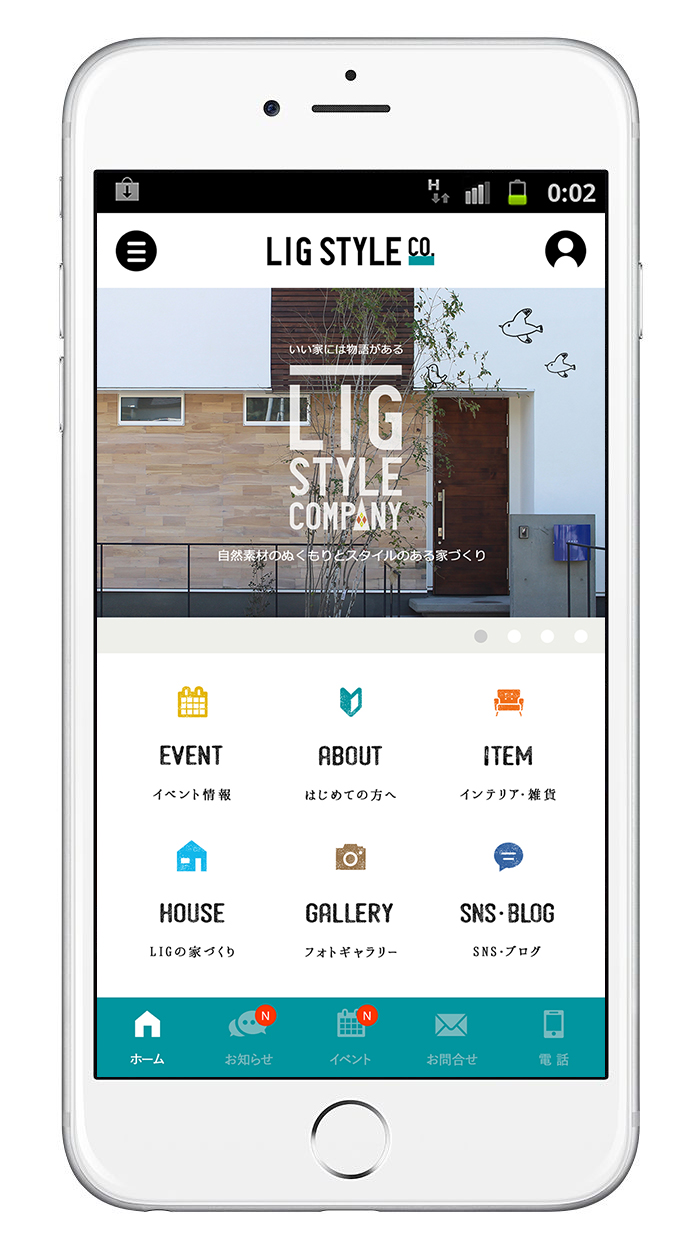 リグスタイルのアプリでは、施工事例やイベント情報はもちろん、