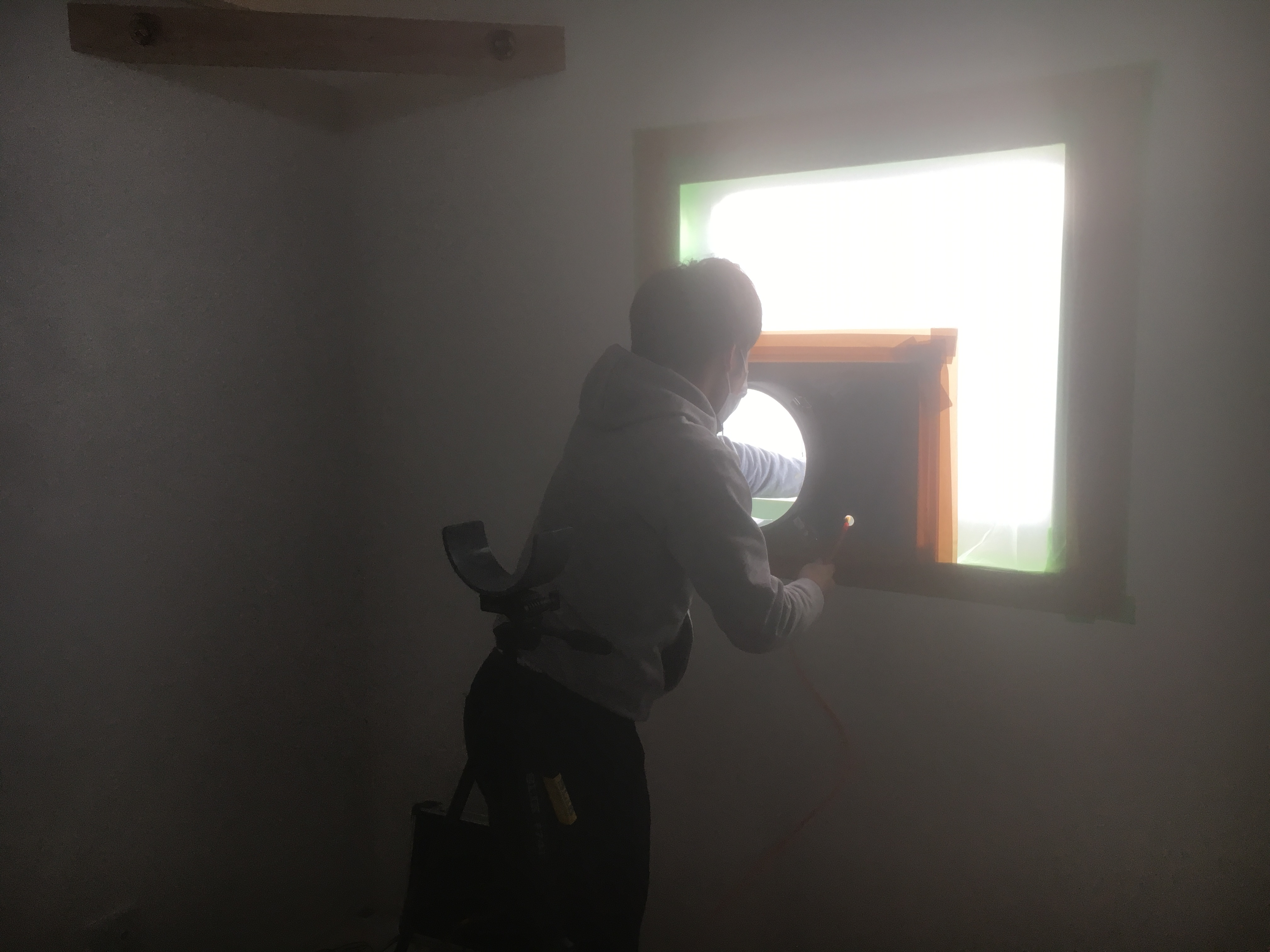 そんなプレッシャーがかかる工事を終えて、本日、お家の気密がどれだけ取れているのかをテストしました。