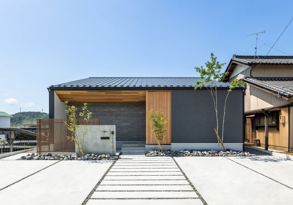 大きな敷地を最大限に活用した存在感のある外観は、塗り壁やSOLIDO、木製ルーバーをバランスよく配置し、落ち着きのあるモダンなデザインに。