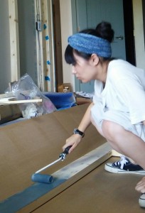 ショールームに置く木製建具の塗装にも挑戦しました。