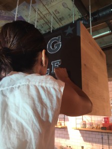 そこに、リグのロゴデザインをチョークで描きます。