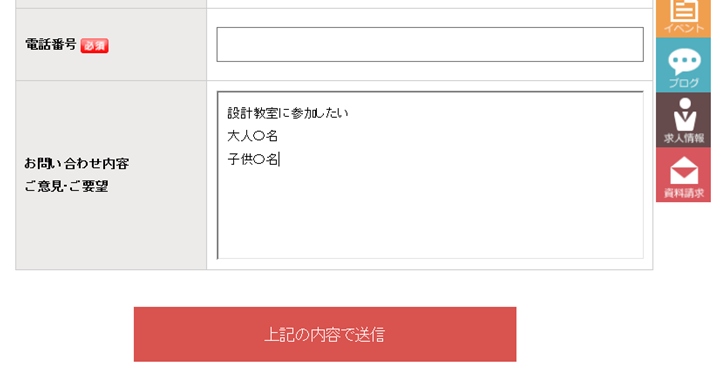 備考欄に「設計教室に参加希望」とお書き添えください。