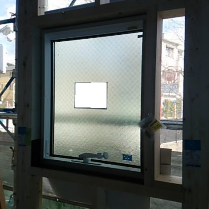 昨日搬入されたサッシ枠と窓ガラスが
