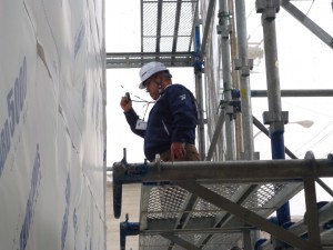 朝イチで見に行くと、大工さんは外壁下地の工事を、