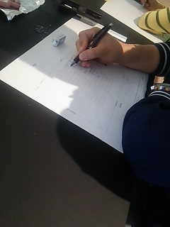 描いては消しを繰り返す、悩む手元をパシャリ。。。