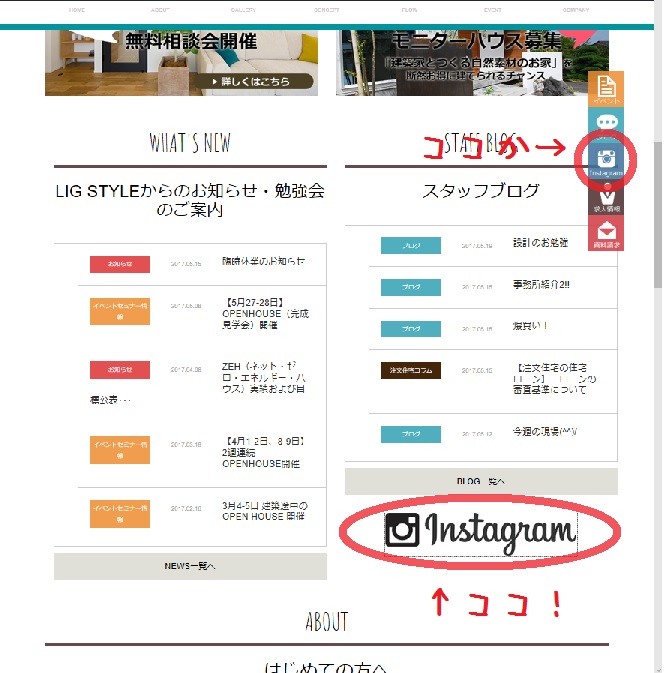 HPにも最近、Instagramアイコンが追加されました\(^o^)/