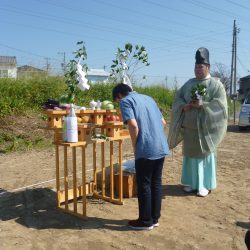 おかげさまで晴天にも恵まれ、無事、土地の神様へのご挨拶を