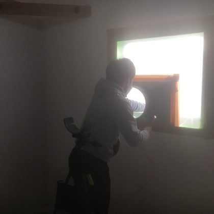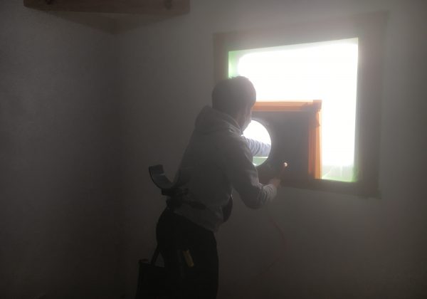 そんなプレッシャーがかかる工事を終えて、本日、お家の気密がどれだけ取れているのかをテストしました。