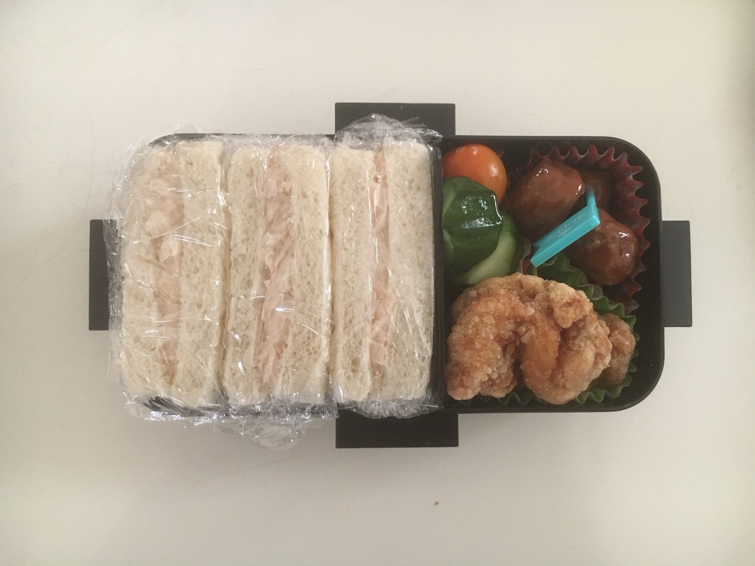 息子のリクエストに応え、ツナマヨのサンドウィッチだけ手作り。
