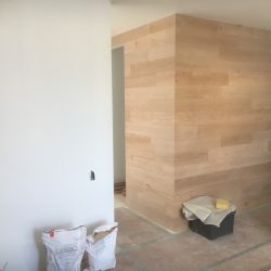 壁に貼ったオーク材が、白いクロスとよく合います!!