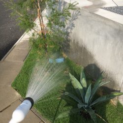 1棟あたり40分くらいかけて(植栽が多い外構の場合)、
