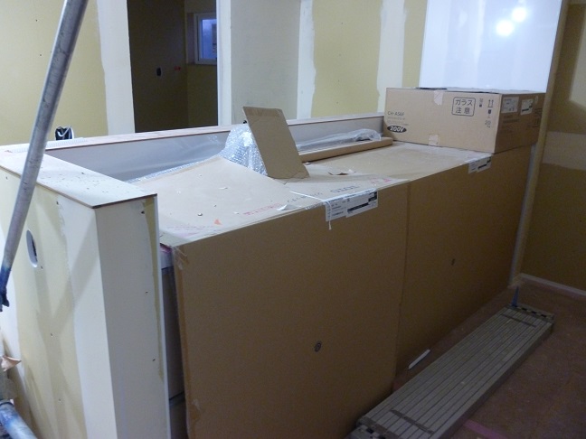 まずは、背面にオリジナルのキッチン収納を造作すること。