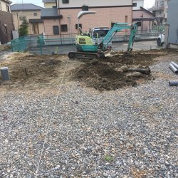 基礎工事が始まる前の先行配管と、埋設されているガス管のチェックです。