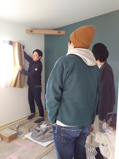 関市のSさまご家族は、カーテンの現地打合せ。