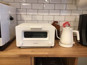 さらに、お家の中には、バルミューダの家電が!!トースターに電気ケトル、さらには加湿器まで。やっぱり、バルミューダの家電はカッコいいし、使い勝手や性能も良さそう。