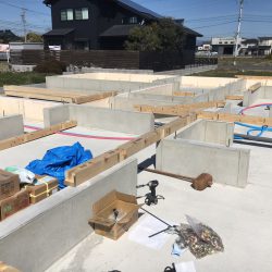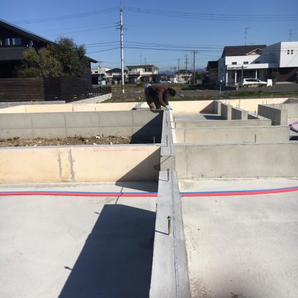 土台は、家の荷重を受ける材料であり、この土台の敷き方もまた、家の傾きなどに影響するとても大切な工程の一つ。今回は平屋なので明日まで土台伏せを行い、上棟に備えます!!