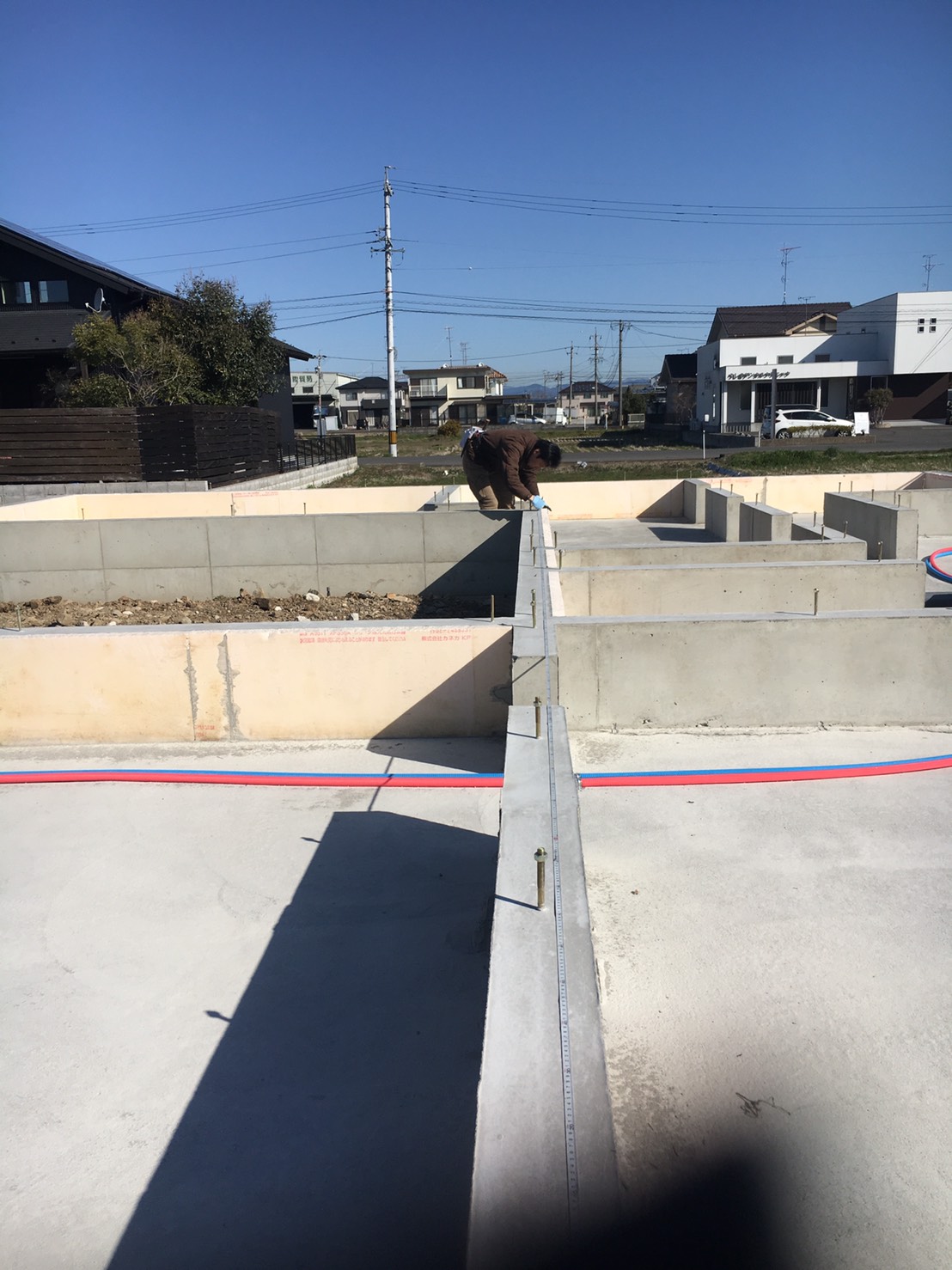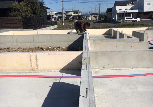 そんな少しだけ肌寒い今朝は、瑞穂市で24日に上棟を迎える、Nさま邸の土台伏せの立ち合いでした。