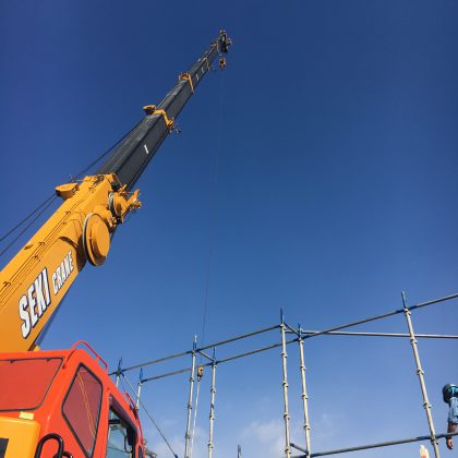 中庭のある平屋のお家の棟上げが無事終了しました。