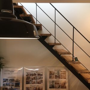 黒い鉄骨階段がインテリアを引き立てます