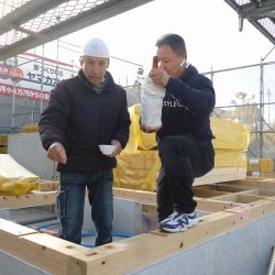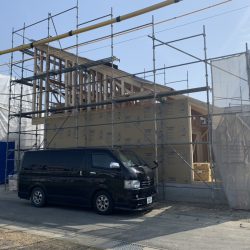 昨日、鶉で進行中の新プロジェクト「遊び心を持ったオトナのパッシブデザイン」のモデルハウスの棟が上がりました^^