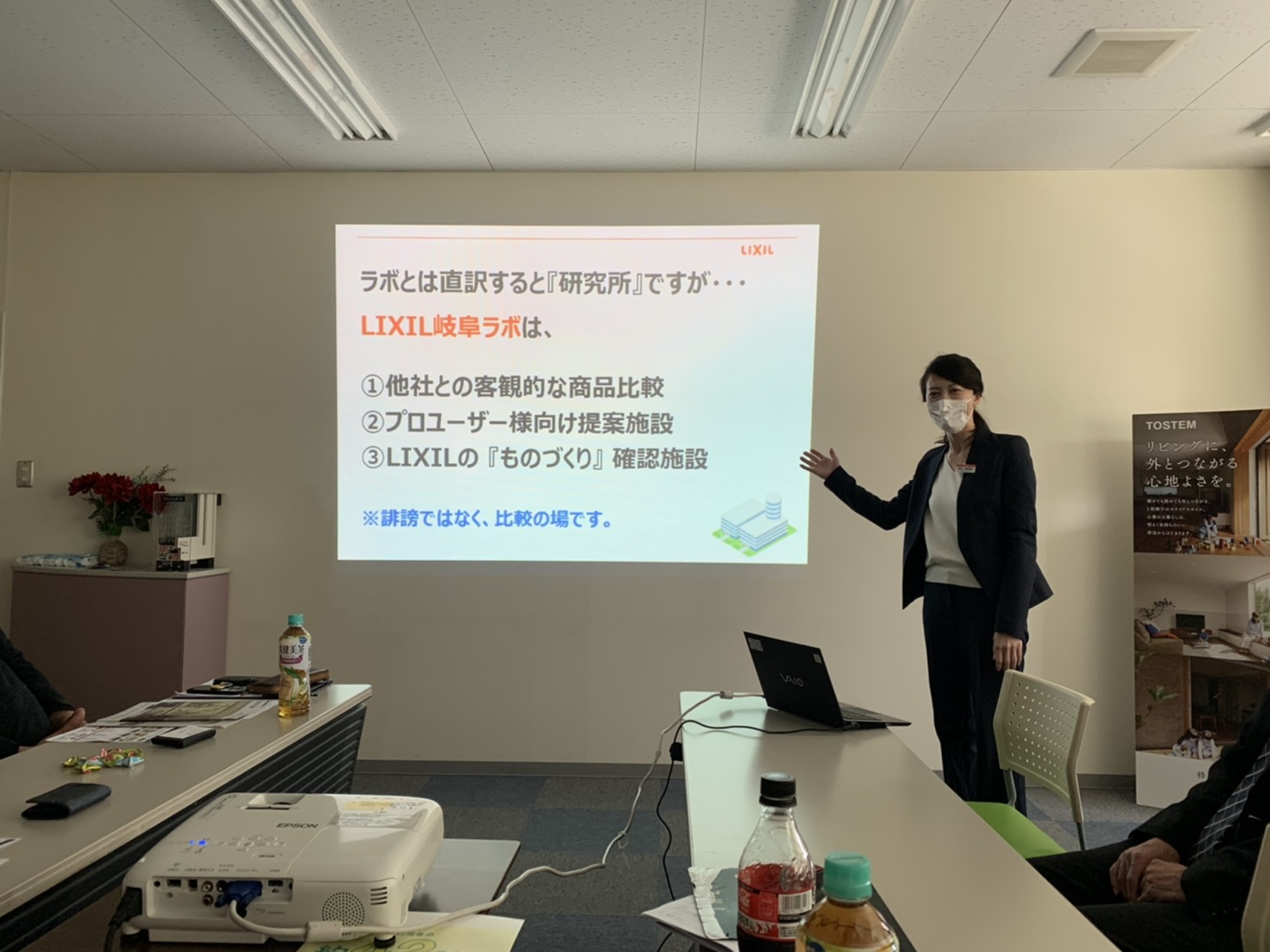 今日は、LIXILさんからの強い誘いがありまして、リクシル岐阜ショールーム内にある「LIXIL岐阜LABO」にて、サッシ・窓の勉強をしてきました^^