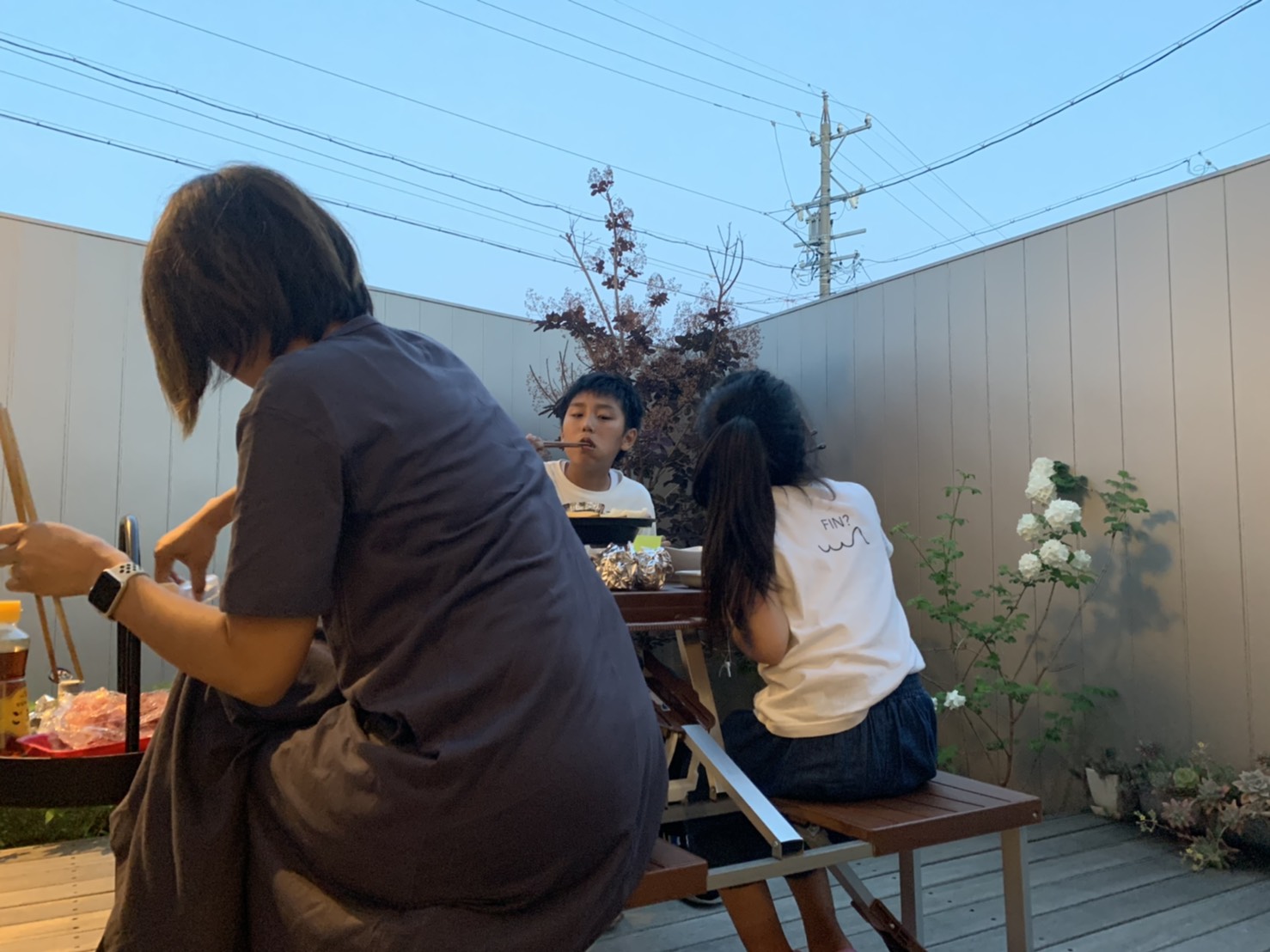そんな時に役立つのが、テラス(お庭)の存在です。幸い自宅にも、小さいながらもテラスがあり、暖かい日にはそこでBBQをやりました。