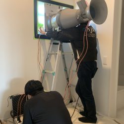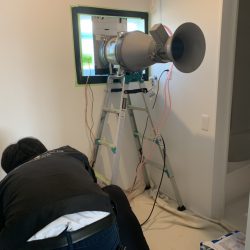 さて、もう1件の気密測定は、今週末から開催するOPENHOUSEの会場にて実施しました。