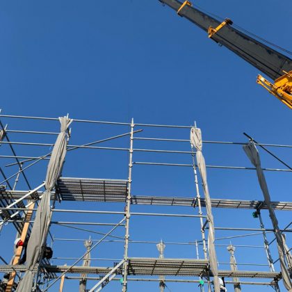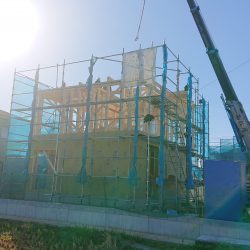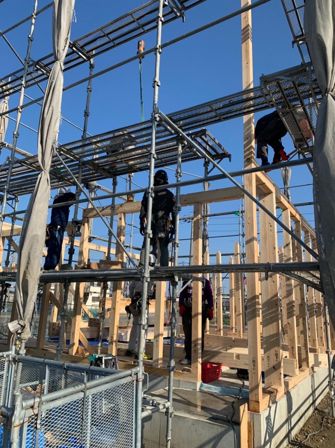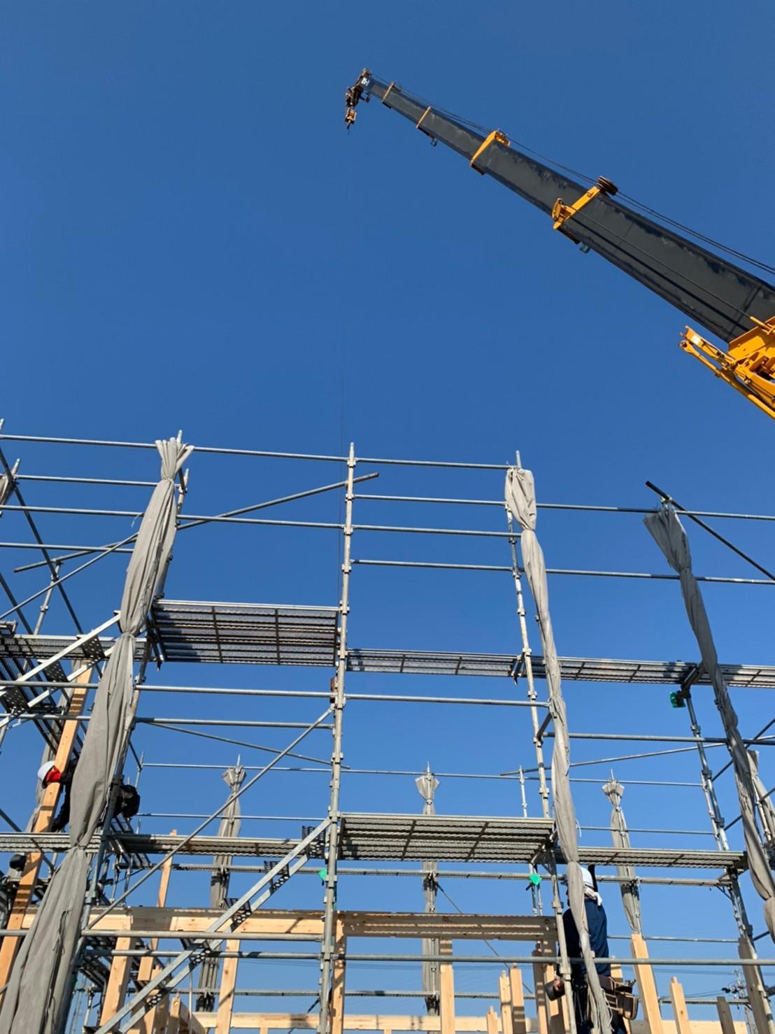 本来なら、先週の金曜日に執り行うはずでしたが、雨天が予測されたため本日に延期。おかげさまで、最高の青空のもと、上棟を執り行うことができました!