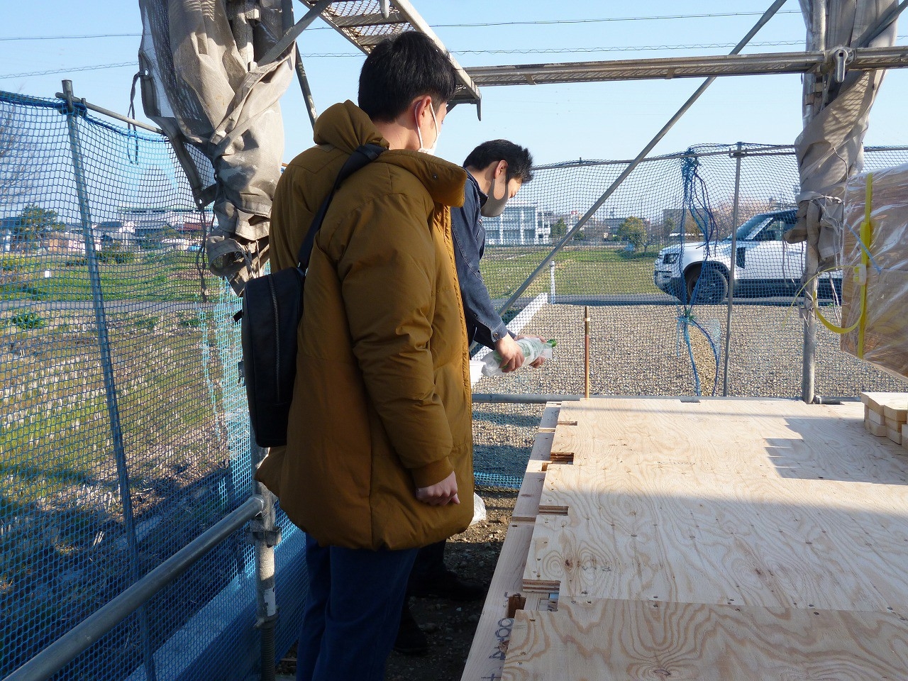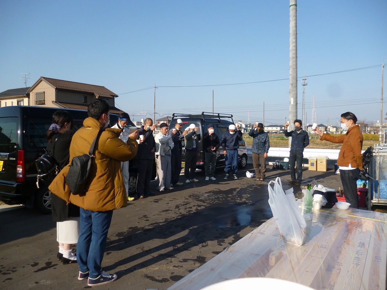 - 工事の安全を記念して皆で乾杯(形だけ…)