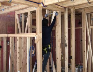 一見梁と柱にボードが打ち付けてある、造作工事中ではよく目にするシーンです。