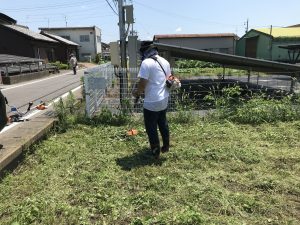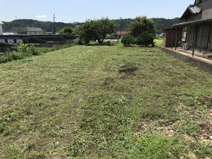 今回は土地の決済から地鎮祭までの時間もあまりないということで、古川と2人で草刈りも。