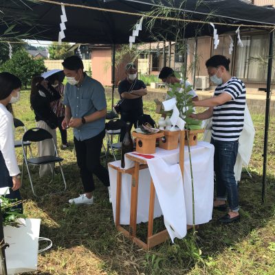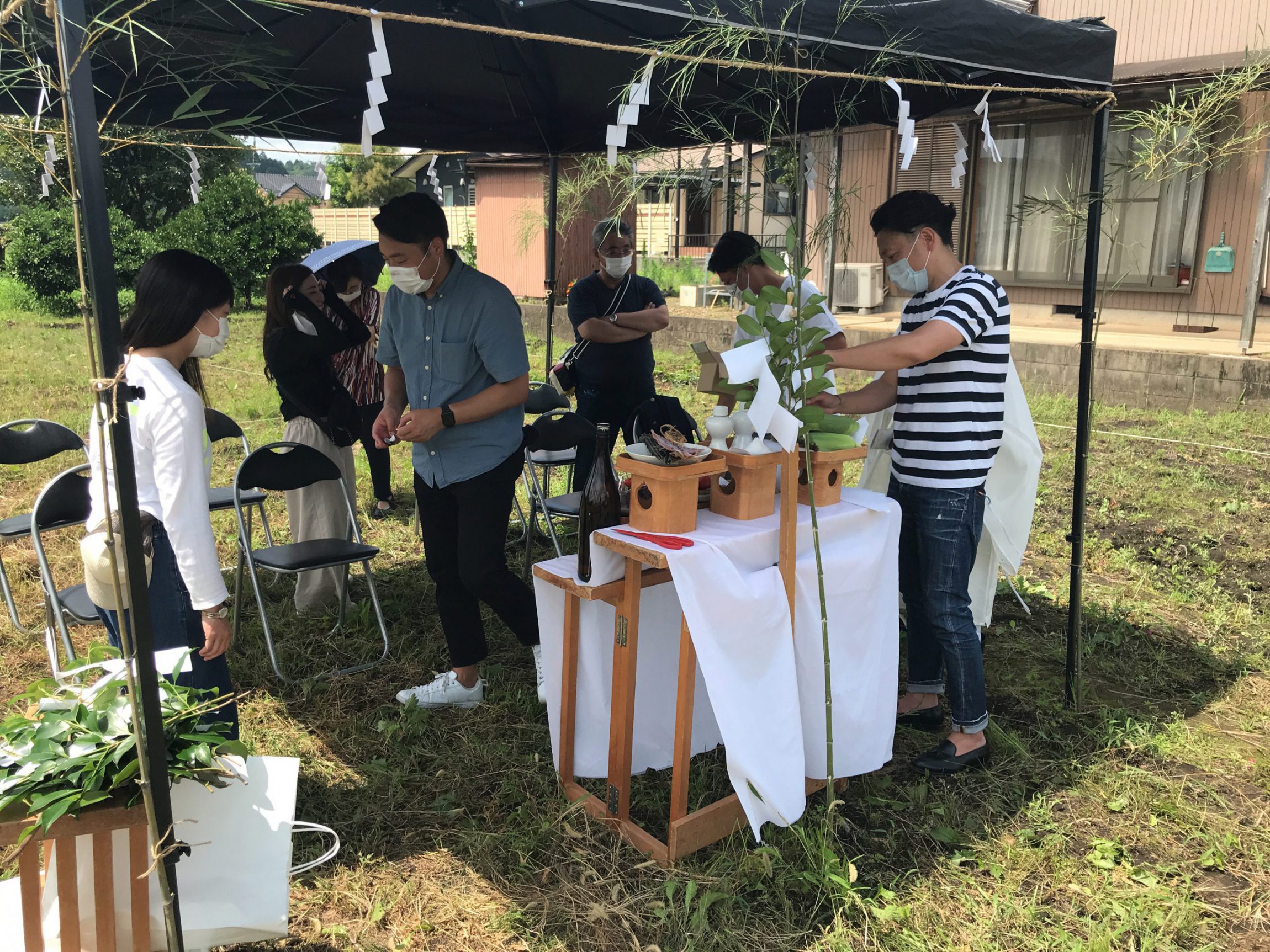 地鎮祭中は暑さもありましたが風も吹き、近所から風鈴の音が心地よく聞こえてきました。