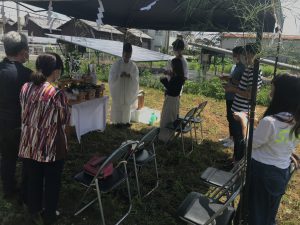 お日様の下で黙々と地鎮祭の準備・・・「暑い、暑い」が口癖になってしまうほどに。