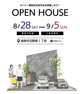 現在開催しております、岐阜市日野でのオーナー様邸の完成見学会も