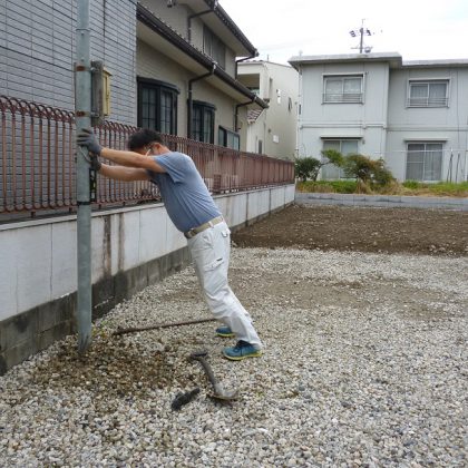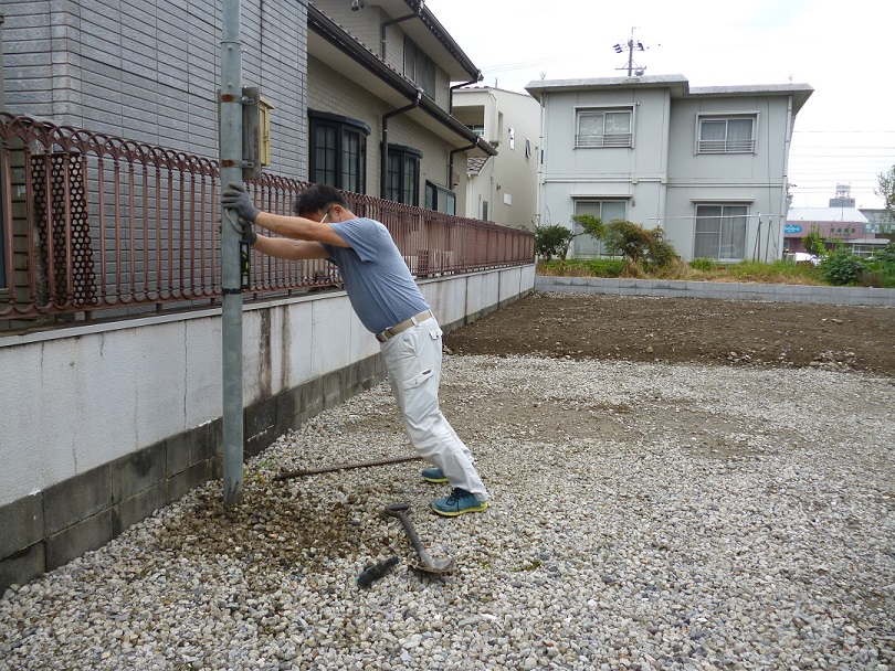 土地の造成工事を終え、建物工事に向けて今日は仮設電灯が立ちました。