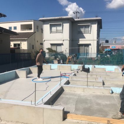 暑い中、水道屋さんが先行配管を施工して頂いております!(^-^)