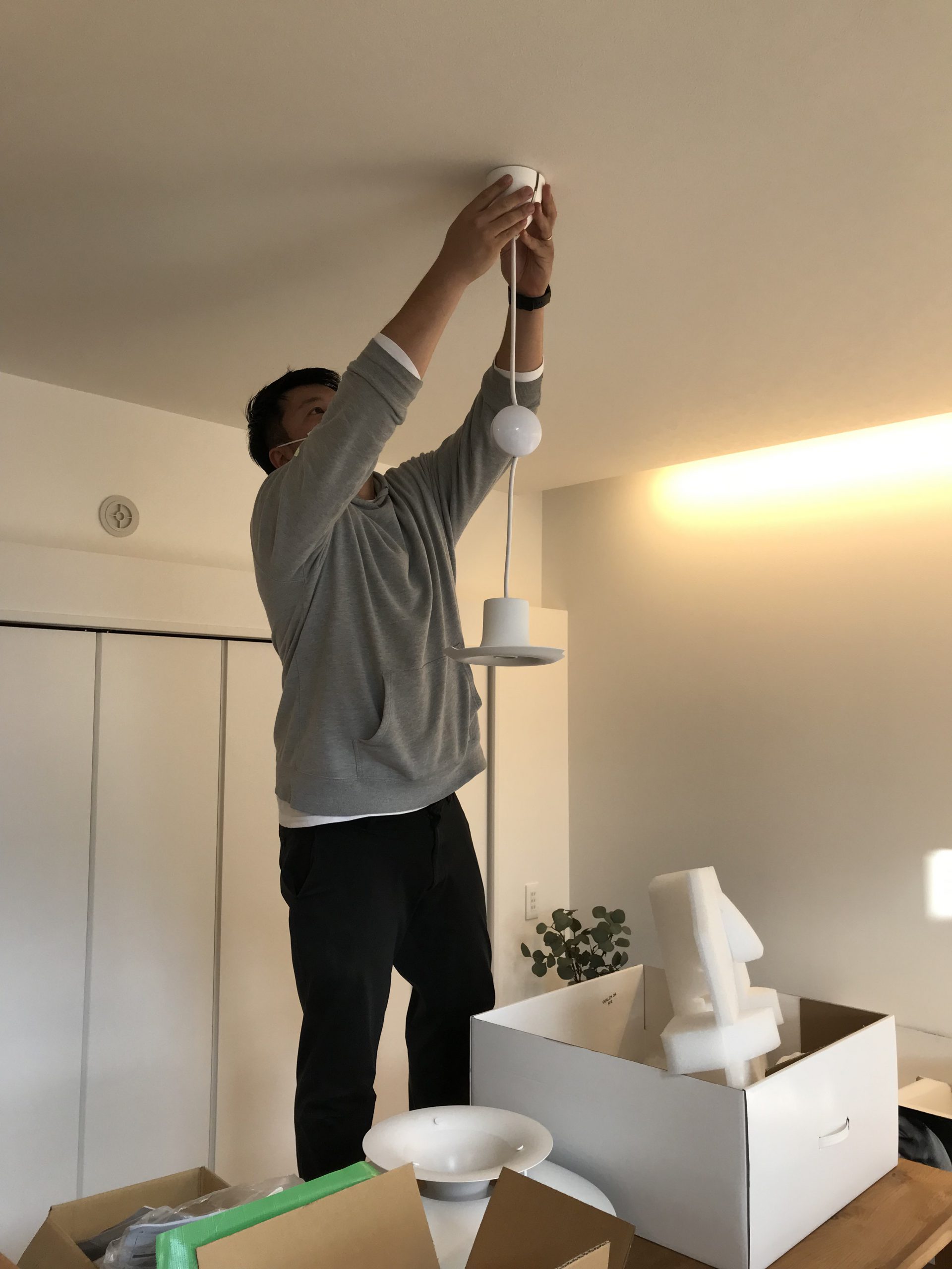 照明を取り付けてる古川さん(笑)