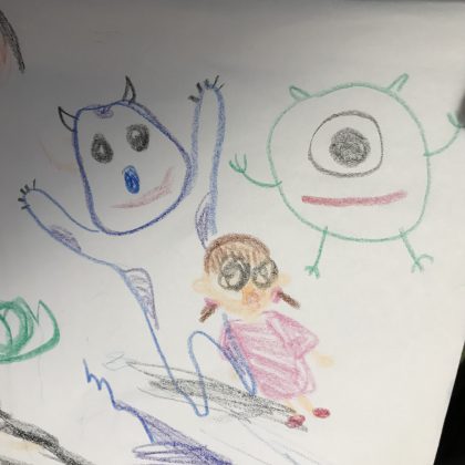 2枚目はお子様が目、鼻、口を描いて出来上がったモンスターズインク。