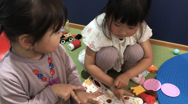いつの間にか2人でおままごとをしたり、手遊びをしたり笑顔で遊ぶ姿が見られました‼