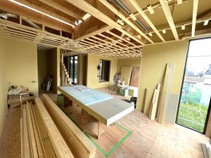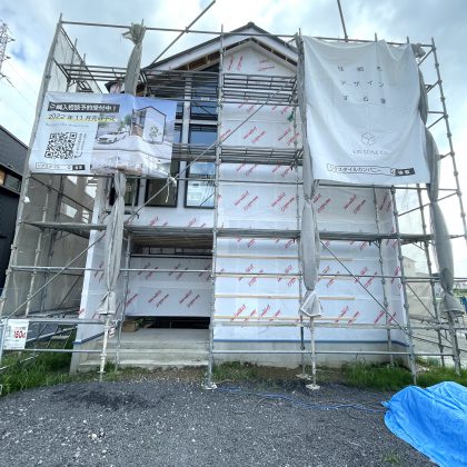 家の外観も見えてきて存在感があって、完成が楽しみなお家です。