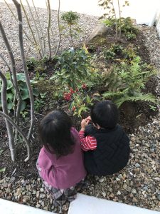 はじめてのお友だちと手を繋いで事務所の庭をお散歩🌈