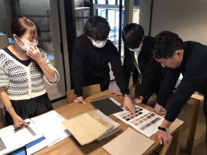 カタログを広げて、サンプルを用意して、この後見積もりを取って、