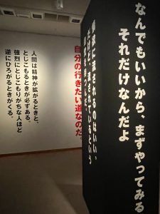 作品の最後の方には、岡本太郎の名言が大きく書かれていて、子供にもそうですが 自分にもこころ動かされる言葉などがありました。