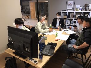 プレカット会議とは、木造住宅の骨組みについて、建材業者さん、大工さん、現場監督の西垣さん、