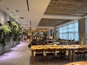 ロビーのフロアも木や緑が多く使われていて、カフェスペースもあったので