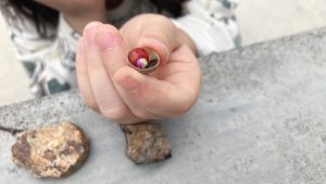 一緒にどんぐりを見つけて、中身を出すのに挑戦中🔥
