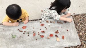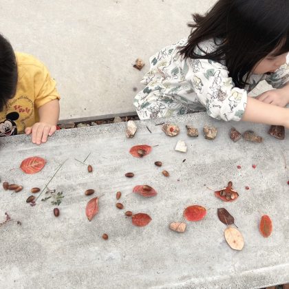 落ち葉もたくさんあるので、こちらも自然におもちゃになります。