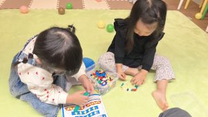 Eちゃんはお手本にそって、Sちゃんは「腕時計作ってるの~⏰」と頑張っていました。
