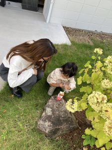 ご来場したお子さまと外に行き、どんぐり見つけSTART‼