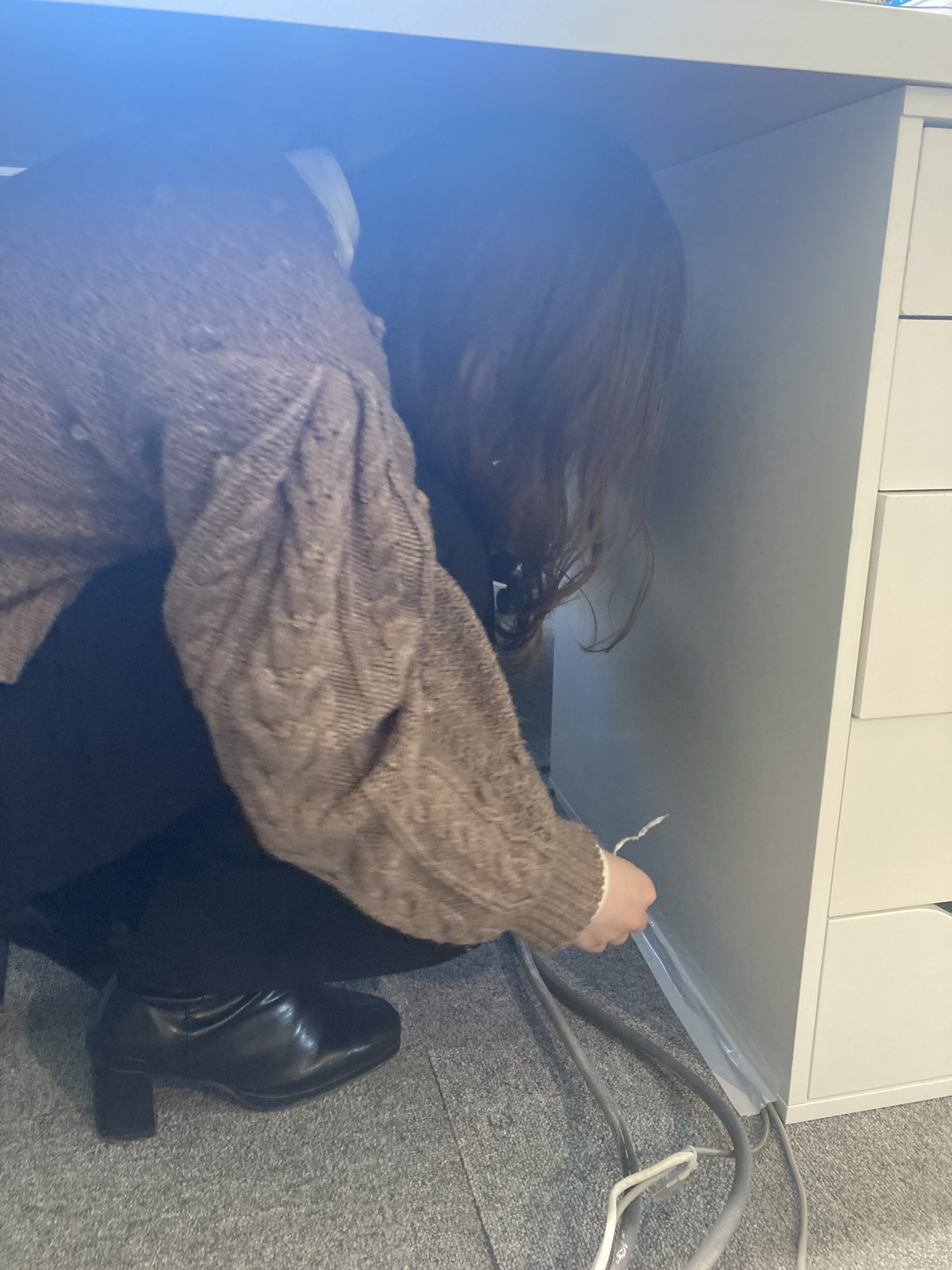 私の机の下にちょうど配線が出てきているので兒玉さんが私が転ばないよう、きれいにテープで留めてくれました!